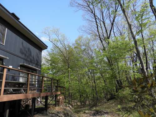 「目には青葉」、まあこれは今の時期、日本全國どこへ行っても「目には青葉」だらけでありますから、特筆すべきことではないのかもしれません。日本は森と水の國であるということは、ふだんは當たり前に感じていることですが、世界的規模で考えてみれば、必ずしも當たり前ではなく様々な恩恵を受けている、ありがたいことなのだと改めて認識する必要があると思います。こちらは、我が家ウッドデッキ前に広がる林の新緑の様子です。