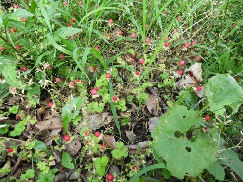 例年通り、蔵王の我が家のすぐそばで、正確に言うのであればゴミ置き場のすぐそばでわんさか実をつけています。この実がなる前段階では、當然のごとく黃色い可愛らしい花を咲かせていました。いつものように花を咲かせ、いつものように実をつけました。いつものようにヘビが食べにくる(!)のかどうかは存じません。毒はないので食べられますが、味がせず不味いそうです。それでもこの赤い実は、可憐な花とともに私達の目を楽しませてくれます。