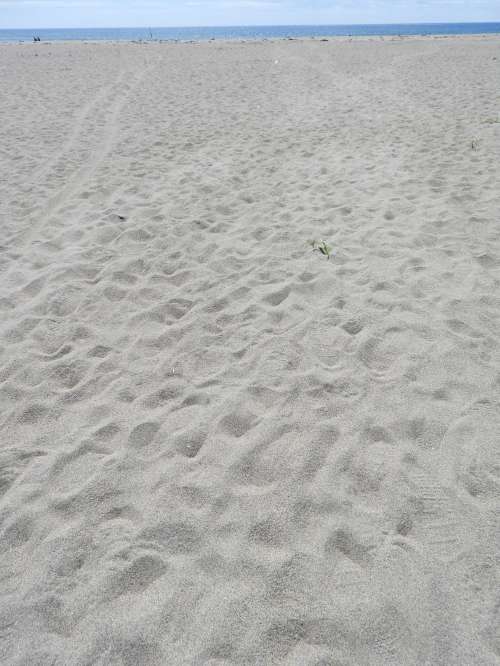 防潮堤から波打ち際に向かうとき、軽く沈み込みながら砂浜を歩きます。さらさらとした、美しい白砂です。日本の海岸線のほとんどは、いわゆる白砂青松が基本だと思うのですが、ここ閖上も御多分に漏れず、白砂の背後には、津波に持ちこたえた松林が連なります。上空ではヒバリがうるさいほどさえずり、平穏そのものの光景です。