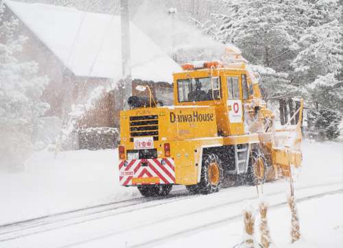 2日の朝、6時頃? まだ夢の中で、今シーズン初めての“除雪車”が家を揺らすのを感じた。その後、何回か通ったが、逞しく雪を飛ばしている。これがシーズン本番になると “どでかいブルドーザー” とペアでやってくるようになる。