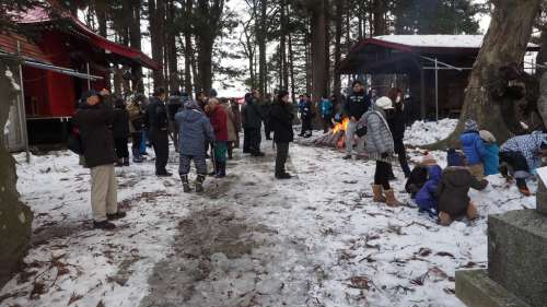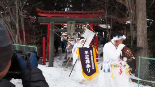 1月8日(木)。“平笠裸參り”に誘っていただいた。平笠地區は、自分たちが住んでいる刈屋地區の隣の地區で、4~5キロ東南に位置し、巖手山の溶巖流跡が見られる、“焼走り“から高速道路に向かって駆け下りたあたりである。