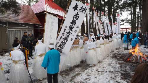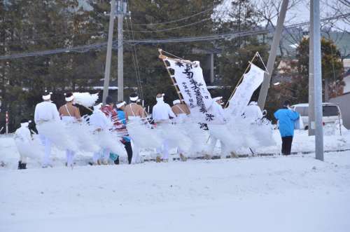 もともとの起こりは、1732年の巖手山の噴火(今は観光資源になっている焼走りができた噴火)だという。この噴火の鎮靜化を願って男だけで行われた裸參りだが、その後、戦爭に取られた夫や息子の武運長久を願って女性たちが參加した経緯があるという。今は五穀豊穣、交通安全、無病息災などを祈念しているようだ。