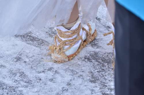 <青氷にわらじ。見よ!この根性>
