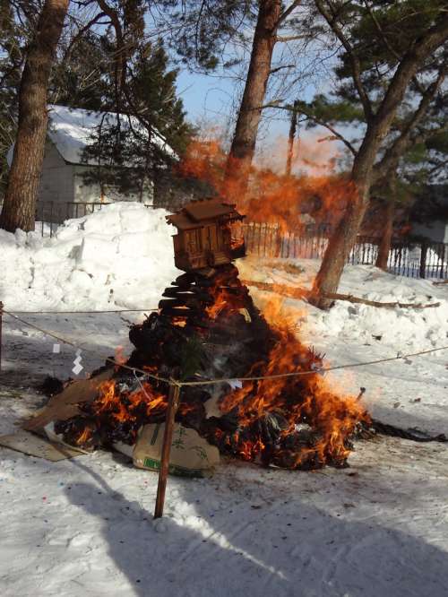 火の粉が飛んできそうな家では心穏やかならず。隣接の田んぼでは灰の中に殘される針金などの始末に気をもむ。サラリーマン家庭でも”のぼり“の入った木箱が回ってきて、來年よろしくと言われるだけ。その時節になったら、自分で回覧を作って、事前に地蔵前に集積しているお札などを焚きあげるだけだった。