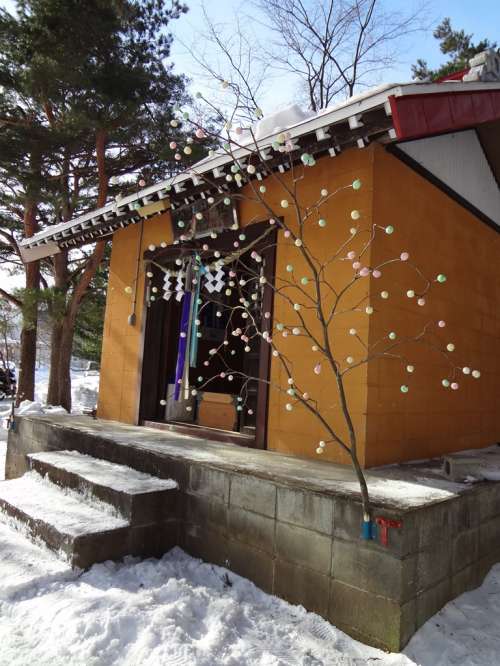 小正月には一足早い1月11日(日曜日)。素晴らしくいい天気だった。萬歩計が車の使用を許してくれないので徒歩。ぶらぶら散歩で20分ほどの所に初詣をした開拓神社がある。