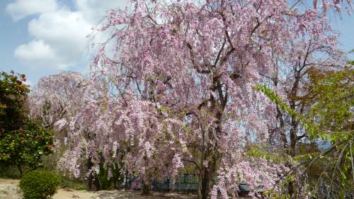 ちなみに、昨年の紅枝垂桜はこんな感じ。