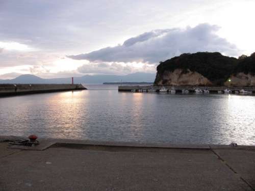 マイボート係留場所が正面で、左手が沖向き堤防ですね。