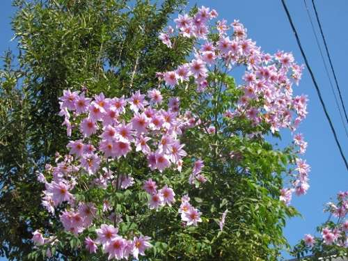莖が木質化するタイプのダリアで、5mくらいの高さに