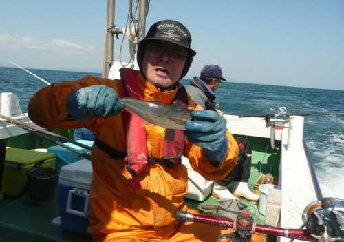 ◆店頭価格、1本8000円!?の大さばににっこり。昨春は若干船酔いもあり