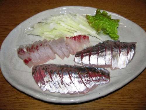 ◆アジと黒鯛のお刺身盛り合わせ、ちびり、コキュっで、
