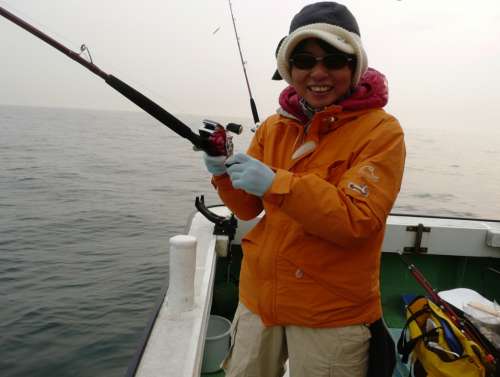 海の船釣りは初めてというN様の奧様の3名が女性釣り師です。