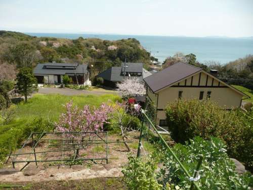 そして、イリコの最終釣行の前日、海の眺望絶佳の5街區高臺の N先生のお宅で、『お花見會』をするのでY様とそのお仲間とも、 全員集合!に參加させていただきました 山腹に薄いピンクの山桜が點在し、庭の濃い桃の花と青き海を 眺めながら、隨分とご馳走になりました