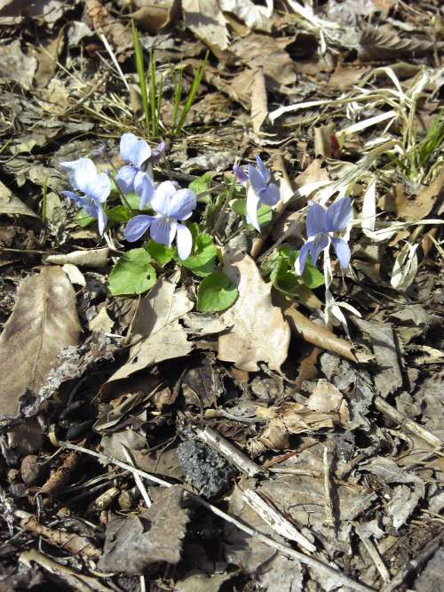 そして4月も終わりに近づくと、コブシが花開き、地面にも白い花が。