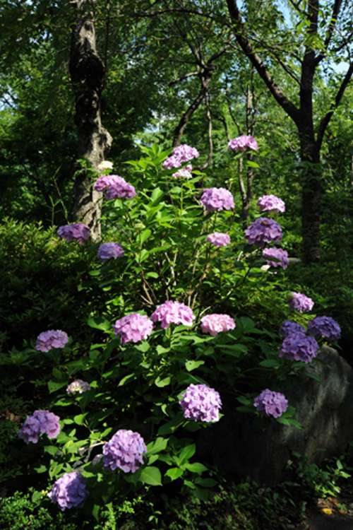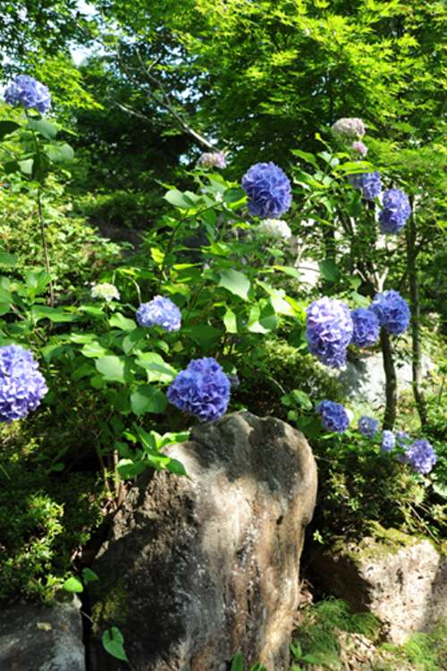 庭石のい間に紫陽花を植えると雰囲気が