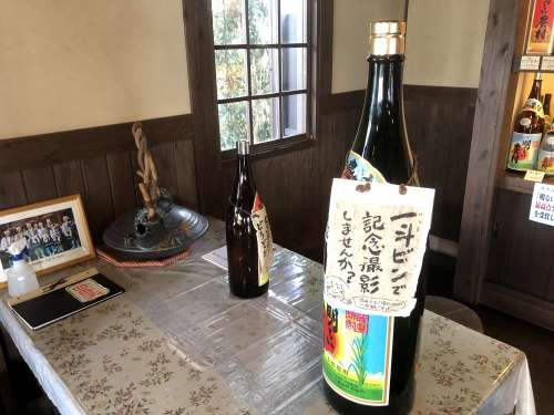 販売所に入り、最初に目に飛び込んで來たのは、大きな焼酎の瓶です。