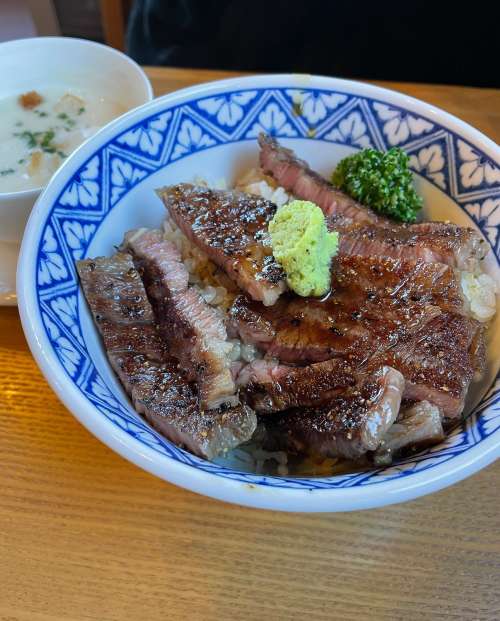 ご飯は、ガーリックライスになっていて、仙臺牛肩ロースをレアに焼き上げられ秘伝のたれでお肉の旨味たっぷりの逸品でした。