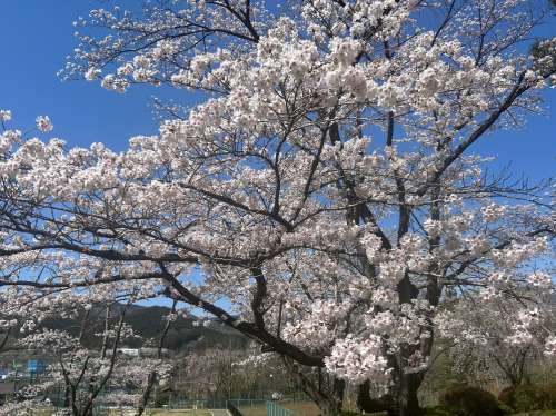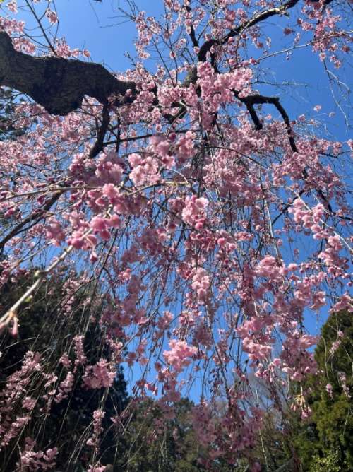 まだ満開ではありませんが、また違ったピンク色の桜で美しいです
