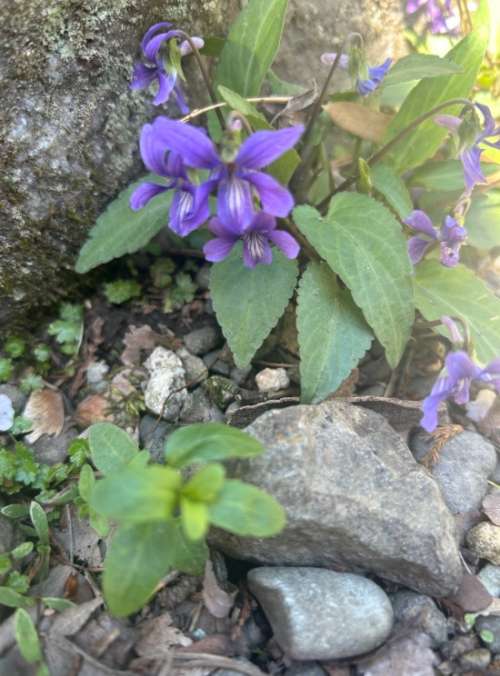 白石城內を散歩してたら、石段の間からコスミレ?でしょうか。
