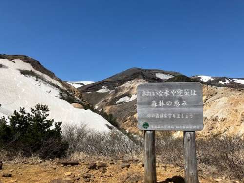 山の上にはまだ雪があり