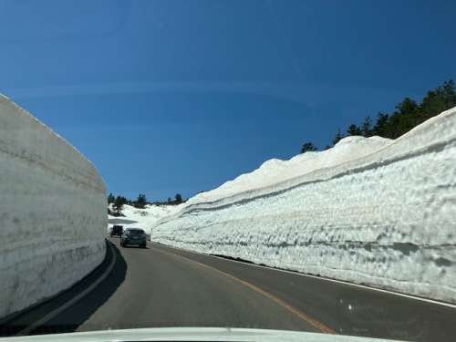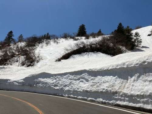 山を登るにつれて段々と雪の壁が