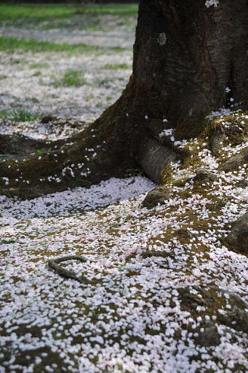散った桜が木々や地面を