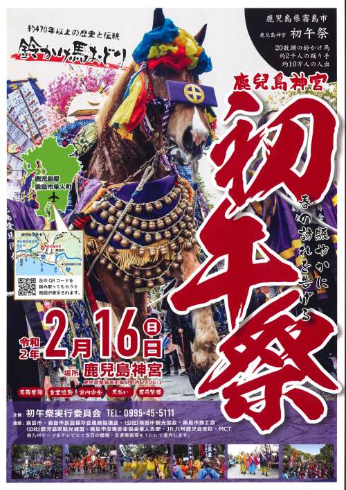 【開催日】 令和2年2月16日(日曜日) 【場 所】 鹿児島神宮 參道、境內 【お問い合わせ先】初午祭実行委員會 0995-45-5111まで