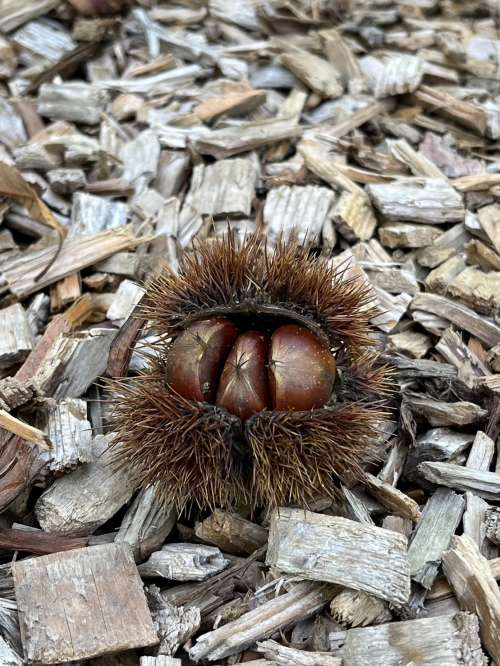 豬苗代ヒルズでは、野生の栗の木が実を落とし初めました🌰