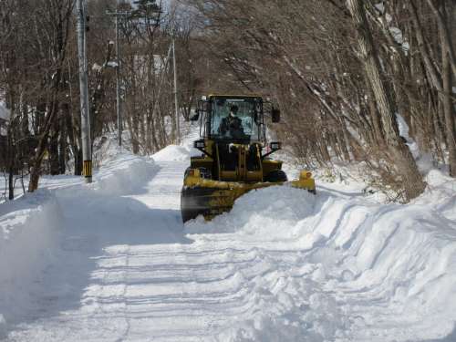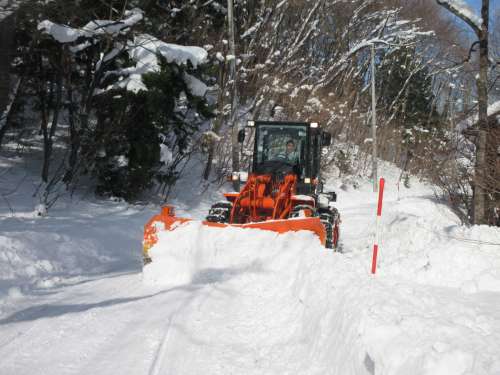 雪をどけて、道幅を広げていきます