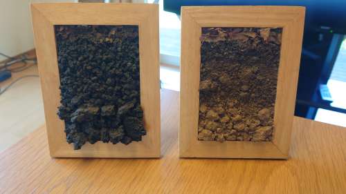 実際に採取した土壌を地層が分かるように標本にする事みたいです。
