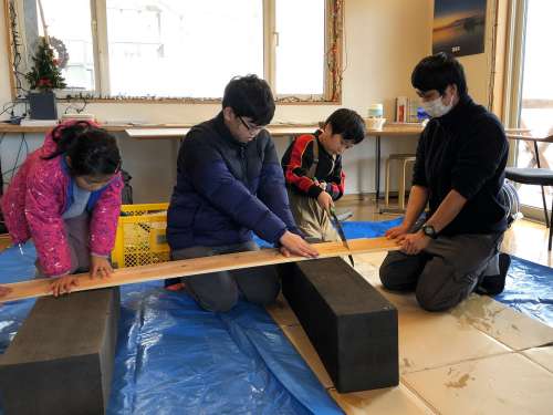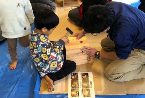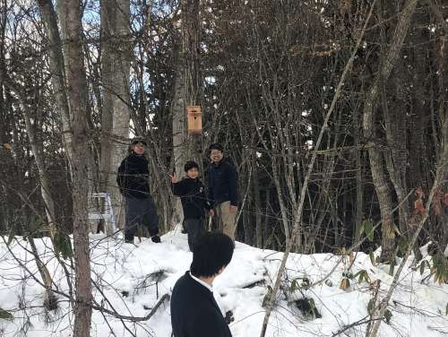 みんなで巣箱にサインを書いたらいよいよ設置です