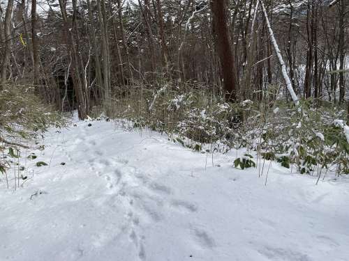 動物たちも人間が歩く道が歩きやすいようで、足跡が並んでついています。
