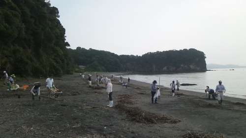 前日が雨だったので、漂流物が多かったのですがみんなで力をあわせて清掃をしました
