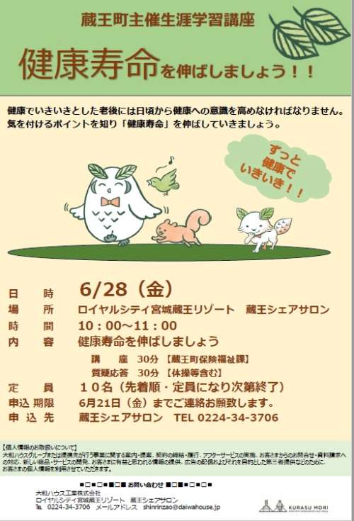 健康壽命を伸ばしましょう!!講座のご案內