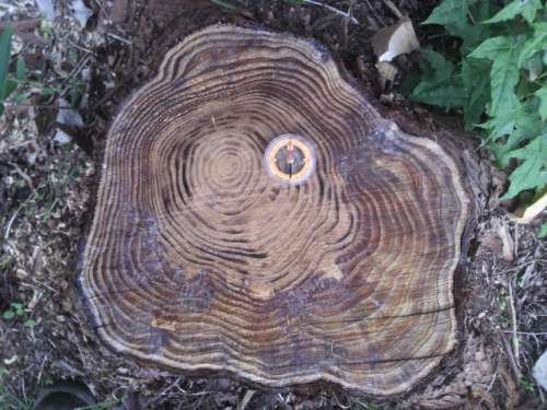 さて、あらためてこうして木の年輪を見てみますと、皆様ご存知のとおり、白と茶色の縞模様が見て取れます。