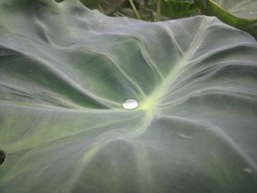 風に揺られる葉の上で、右へ左へと転がる水玉を眺めていて、ふと水玉ができる仕組みに興味を持ちました。油やロウなどが染み出ていて、水滴を弾いているのでしょうか。
