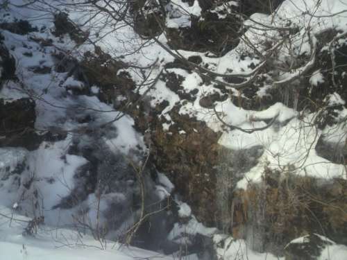 日中の暖かさを物語るように、路肩の石崖からは沢山のツララが垂れ下がっていまし