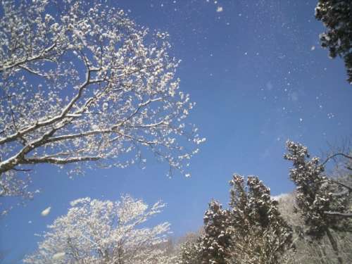 そして、その風が、ブワッと、木々に掛かった綿帽子をキラキラと舞い上がらせ、