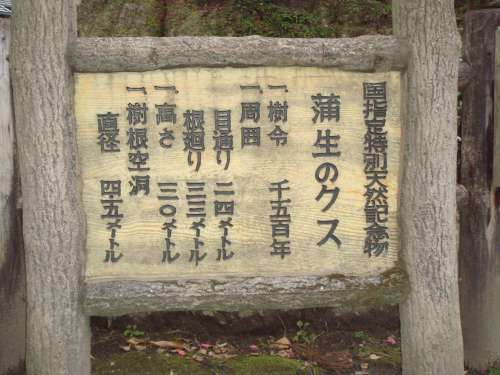 『國指定特別天然記念物蒲生のクス』