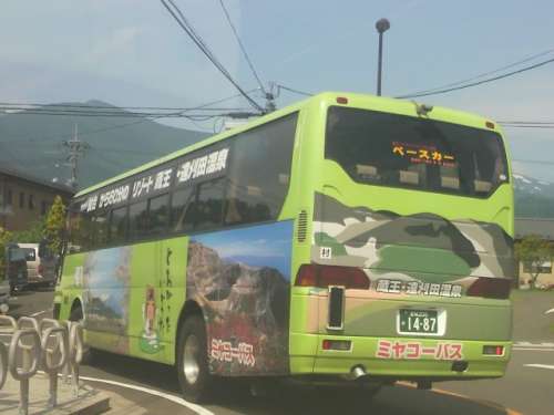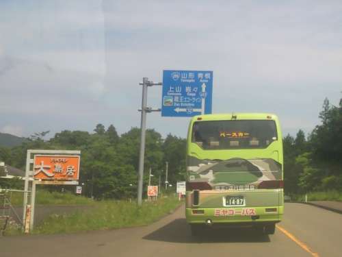 仙臺から蔵王への道中、仙臺と蔵王遠刈田を結ぶ高速通勤バスの後ろに車を付けまし