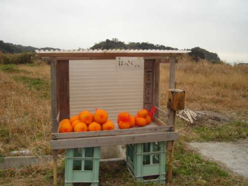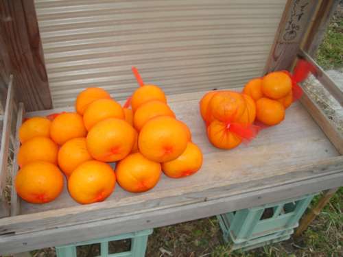 さて、そんな今週の霧島市內の隼人西インターチェンジ近くの道路脇に、おいしそうな「はっさく」みかんが無人販売におかれていました。なんと一袋100円と書かかれているではないですか。