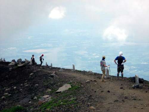 心配していた雨も今のところ、降って來ない。期待していなかった景色も申し分無い「山頂のお鉢をぐるっと一周しますか」S主任が提案する「いゃ、ちょっとそれはやめておいたほうが???