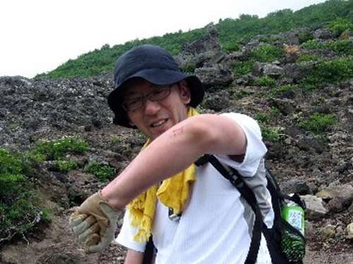 幸いにして怪我は両腕肘のかすり傷で済んだようだ、出血もさほどではない、あやうく同行メンバーに迷惑を掛けるところだった。下りは登りよりも余程慎重に足運びをしなくてはならない、體力?気力の回復の為しばらくここで休憩を取ることにする。