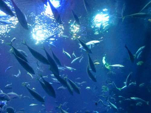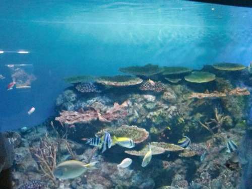 たくさんの魚が泳いでいます、とてもキレイで私も水槽の中で気持ちよく泳ぎたくなります
