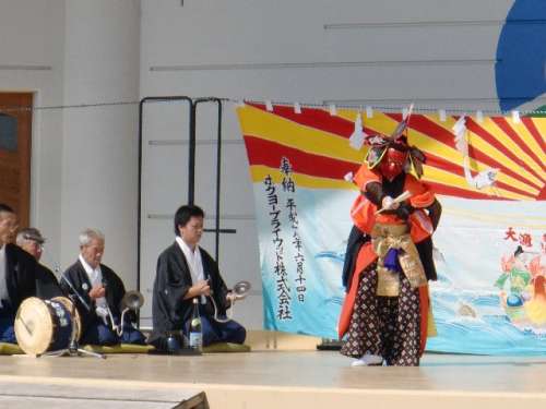 するとステージの方では宮古のあの有名な“黒森神社の黒森神楽”が演じ始められます