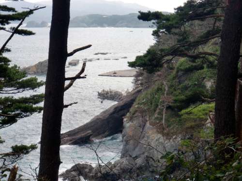 潮吹き穴(しおふきあな)は、浄土ヶ浜の北で日出島地區と休暇村陸中宮古の間の海岸にあります