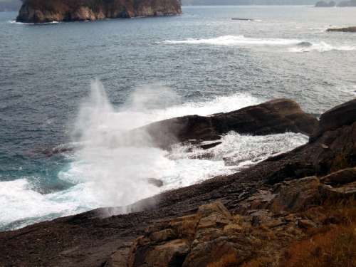 そこは大きな波が打ち寄せると、波の圧力に押されて海水が地上に吹き出します
