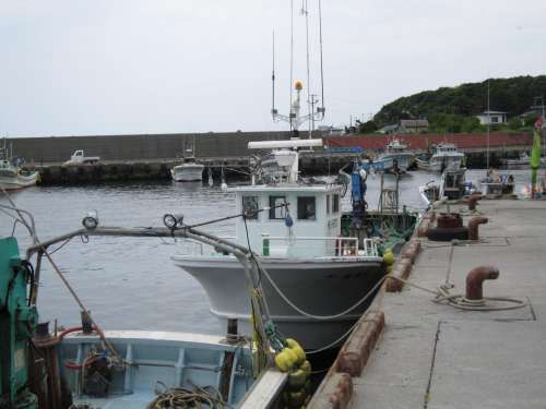 漁船、スケソウ、エビ篭、タコ篭漁船が並んでいます。