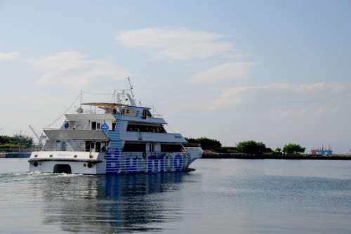 観光遊覧船 ブルームーン です。 これは函館港內を30分クルージングしてくれるそうです。 案外海からみる函館というのは見たことがないもので、お勧めです。