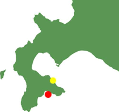 赤丸が函館ハリストス正教會。 黃丸は「ロイヤルシティ鹿部リゾート」