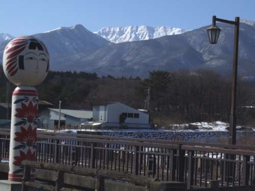 右手に屏風(fēng)岳を望みながら松川に掛かる「こけし橋」を渡ります。